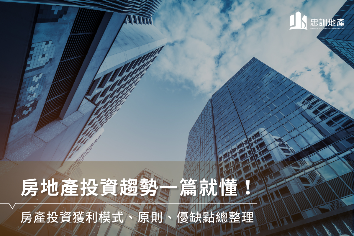 如何投资房地产?投资房地产有风险吗?买房投资要注意什么?本文将分享完整的房产投资入门指南,介绍投资房地产的优缺点、获利模式与3个买房投资前必看参考数据,如果对海外房产投资有兴趣,欢迎咨询忠训地产!